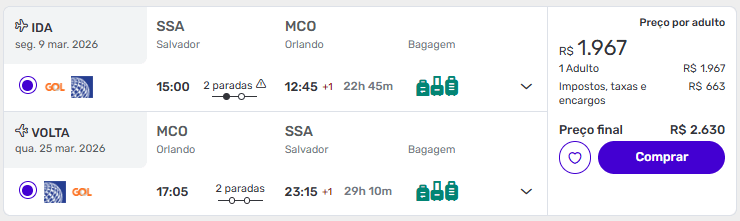 De Salvador para Orlando a partir de R$ 2.630 ida e volta com bagagem.