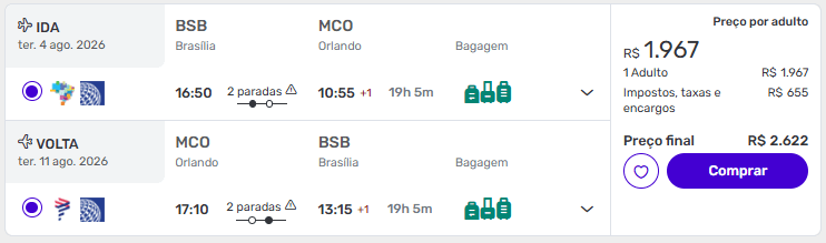 De Brasília para Orlando a partir de R$ 2.622 ida e volta com bagagem.