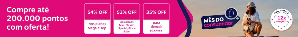 • 52% de desconto para assinantes dos planos Mini, Classic, Special, Plus e Super