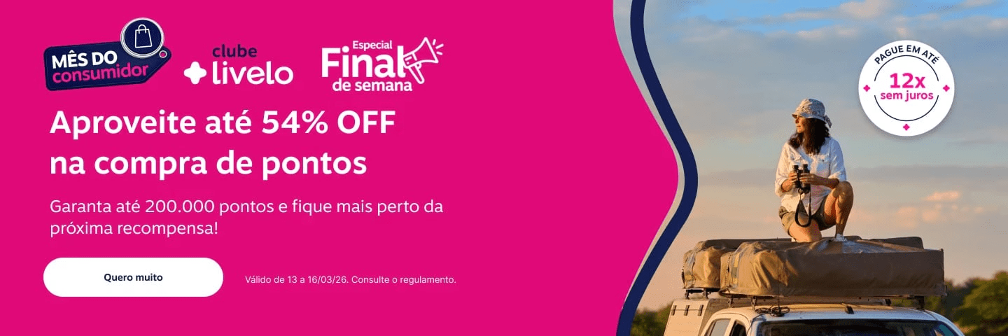 Quem acumula pontos para viajar ou trocar por produtos tem pouco tempo para aproveitar uma das campanhas mais agressivas do ano. A Livelo está com uma promoção especial do Mês do Consumidor, oferecendo até 54% de desconto na compra de pontos, mas a oferta termina hoje, segunda (16 de março).