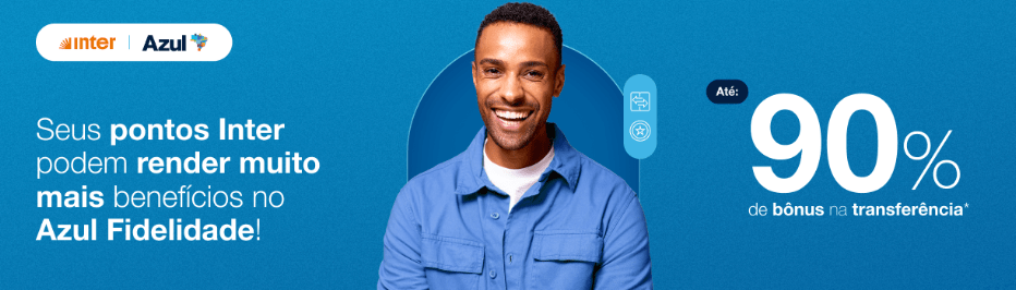 O Azul Fidelidade está oferecendo até 70% de bônus em transferências de pontos do Inter Loop, com possibilidade de ganhar até 20% a mais, de acordo com o tempo de participação no Clube Azul!