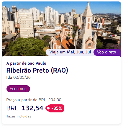 De São Paulo para Ribeirão Preto a partir de R$ 132,54 (35% de desconto).