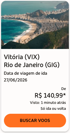 Um dos menores valores encontrados foi a partir de R$ 140,99 no trecho Vitória (VIX) – Rio de Janeiro (GIG), com taxa de embarque incluída.