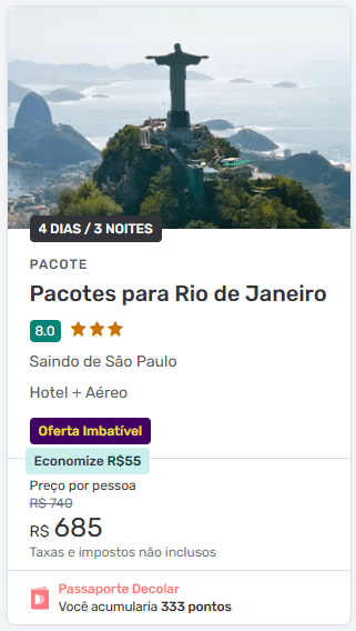 - Os preços podem sair mais baratos do que montar a viagem separadamente