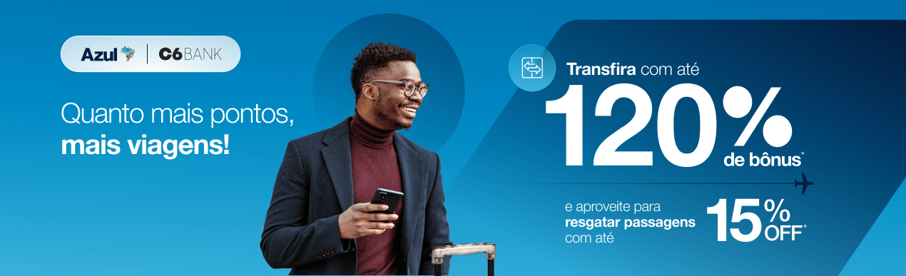 Azul e C6 Bank: último dia para transferir pontos com até 120% de bônus