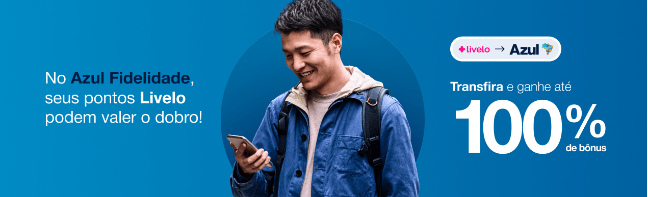 - 70% de bônus para assinantes do Clube Azul e/ou Clube Livelo com conta ativa
