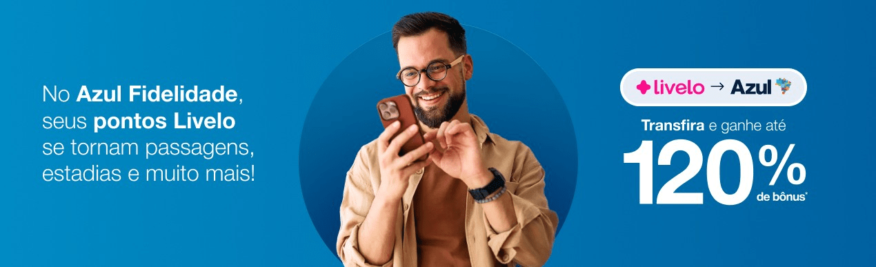 Azul e Livelo oferecem bônus de até 120% na transferência de pontos