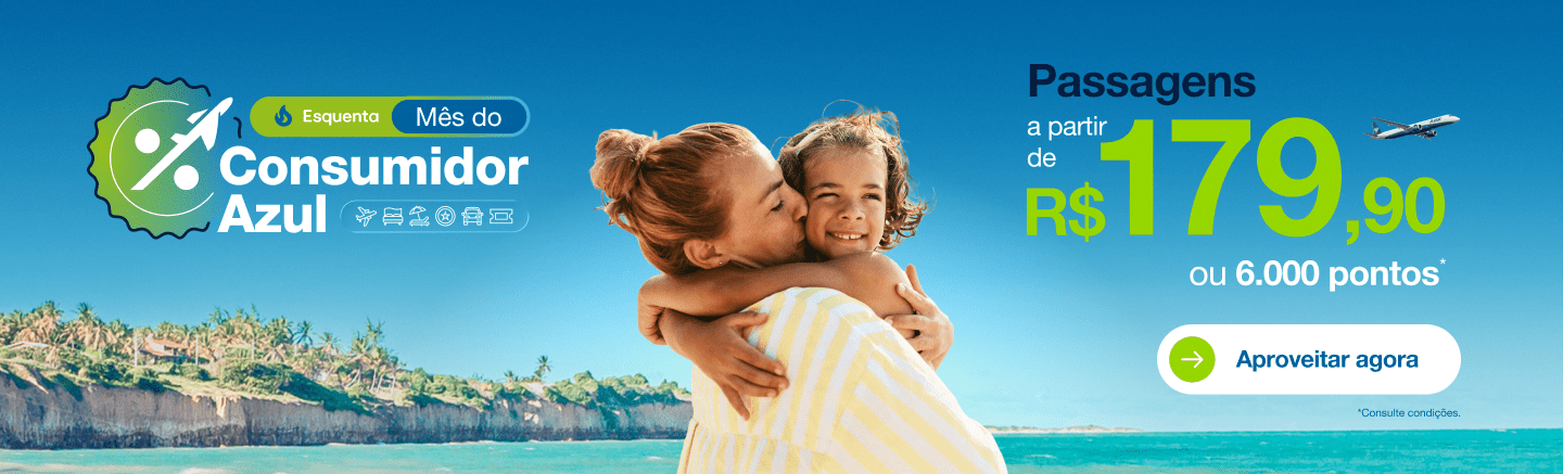 A Azul Linhas Aéreas lançou nesta quarta-feira (4) o Esquenta do Mês do Consumidor 2026, campanha que já traz promoções de passagens aéreas para diferentes destinos no Brasil.