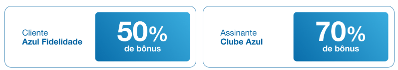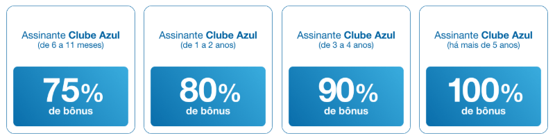 A estrutura da promoção combina bônus base com percentuais adicionais para assinantes mais antigos do Clube Azul. Na prática, funciona assim: