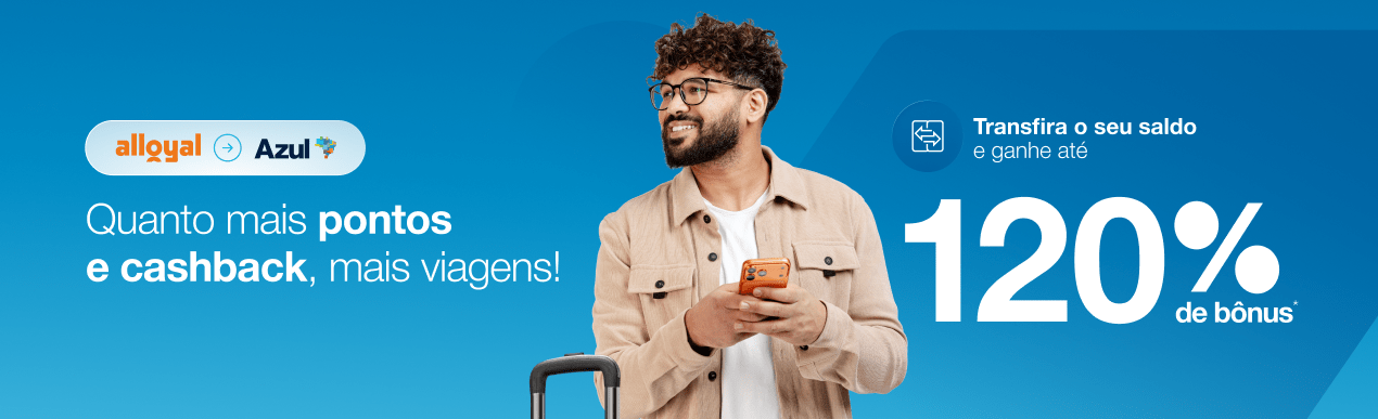 Azul Fidelidade libera bônus de até 120% na transferência de pontos Alloyal até amanhã