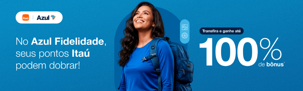 O Azul Fidelidade está oferecendo até 80% de bônus em transferências de pontos dos cartões Itaú, com possibilidade de ganhar até 20% a mais, de acordo com o tempo de participação no Clube Azul!