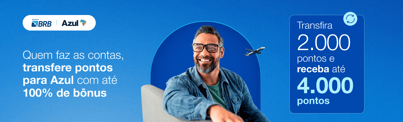 O Azul Fidelidade está oferecendo até 70% de bônus em transferências do BRB, com possibilidade de ganhar até 30% a mais, de acordo com o tempo de participação no Clube Azul!