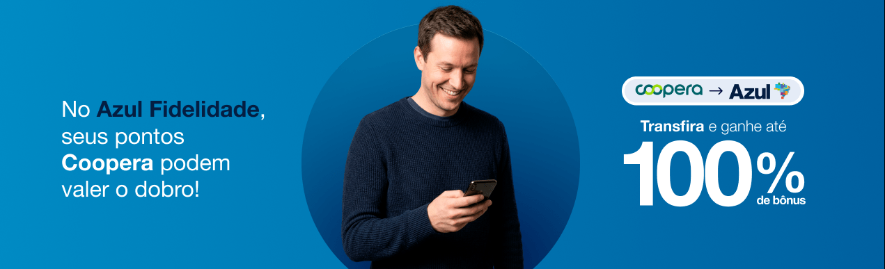 Azul Fidelidade oferece até 100% de bônus na transferência de pontos Coopera