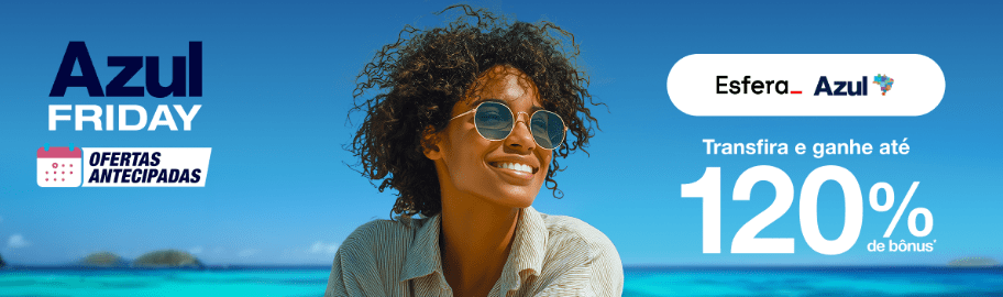 O Azul Fidelidade está oferecendo até 90% de bônus em transferências de pontos Esfera, com possibilidade de ganhar até 30% a mais, de acordo com o tempo de participação no Clube Azul!