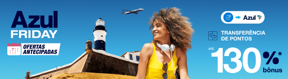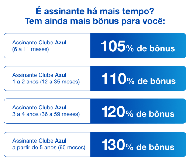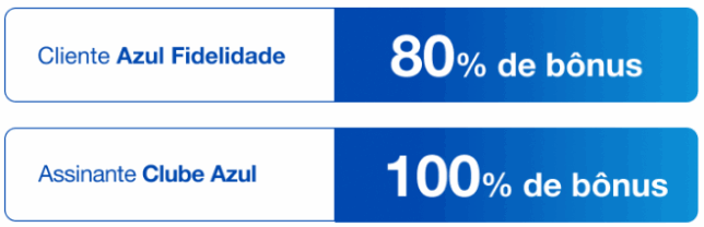 - 100% de bônus: assinantes do Clube Azul, com conta ativa;