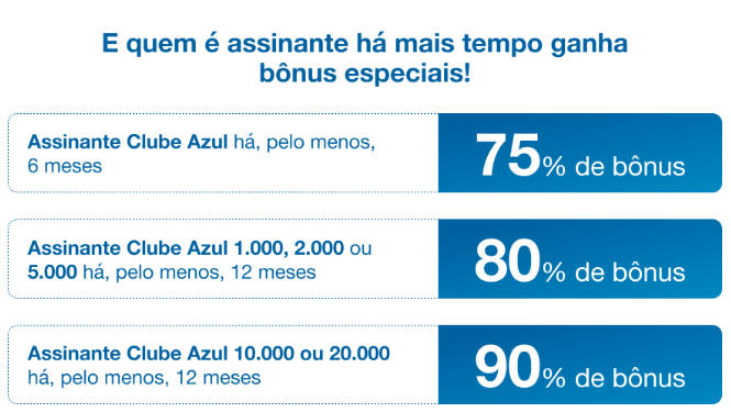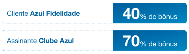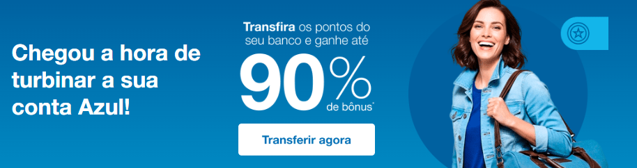 O Azul Fidelidade está oferecendo até 70% de bônus em transferências de pontos de diversos bancos e cartões de crédito, com possibilidade de ganhar até 20% a mais, de acordo com o tempo de participação no Clube Azul!