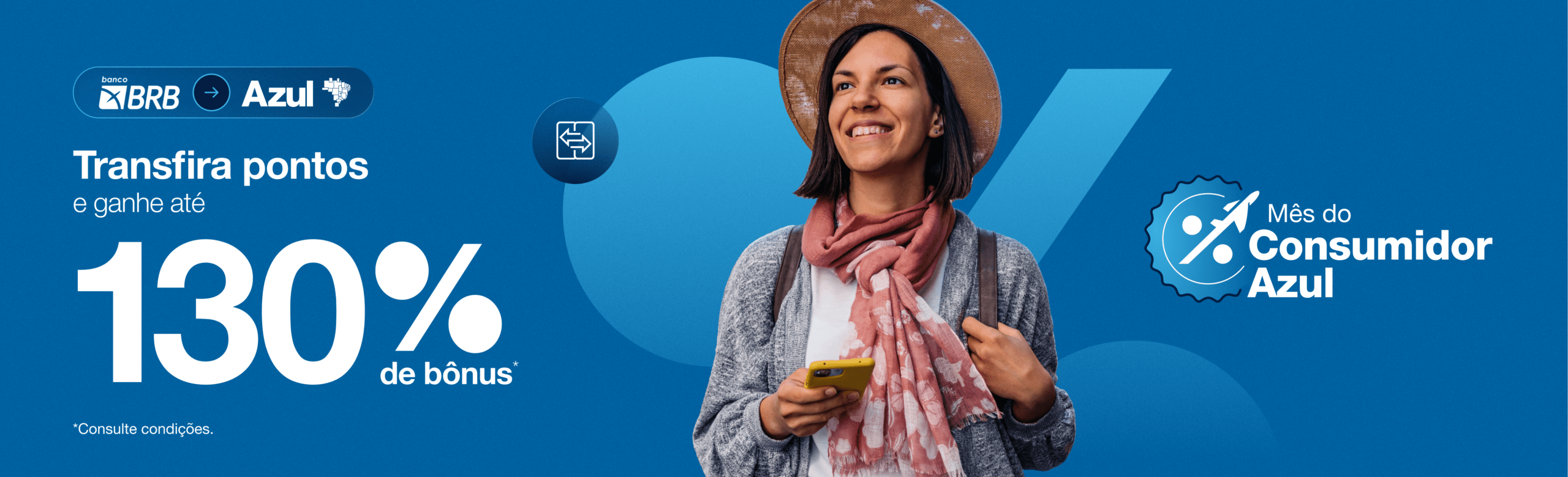 O Azul Fidelidade lançou uma nova campanha de transferência de pontos em parceria com o banco BRB que pode render até 130% de bônus para quem enviar pontos do cartão de crédito para o programa da companhia aérea.
