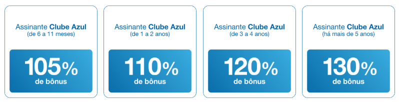 Já os assinantes do Clube Azul têm uma bonificação maior, de 100% de bônus sobre a transferência.