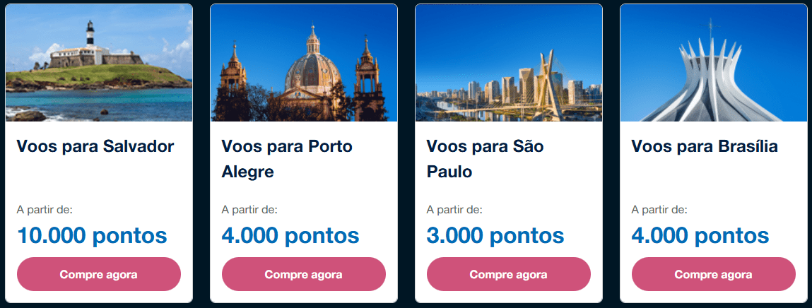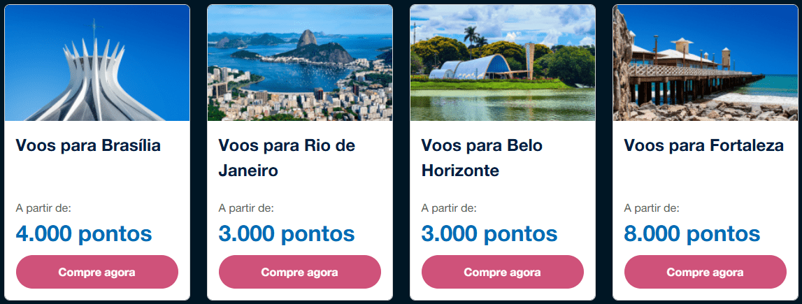 - Brasília – a partir de 4.000 pontos