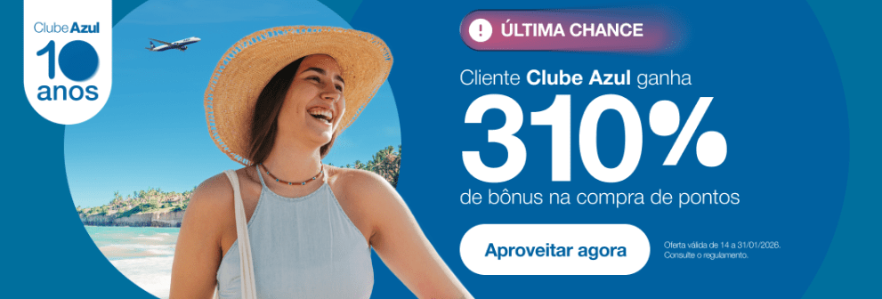 - Assinantes do Clube Azul: até 310% de bônus na compra de pontos