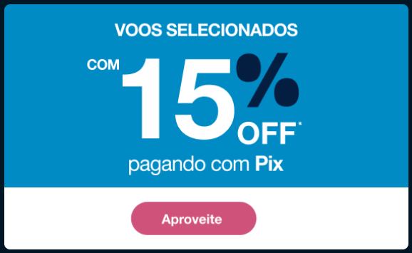 Isso significa que, além das tarifas promocionais já reduzidas, você ainda consegue um desconto adicional automático ao escolher o PIX como forma de pagamento.