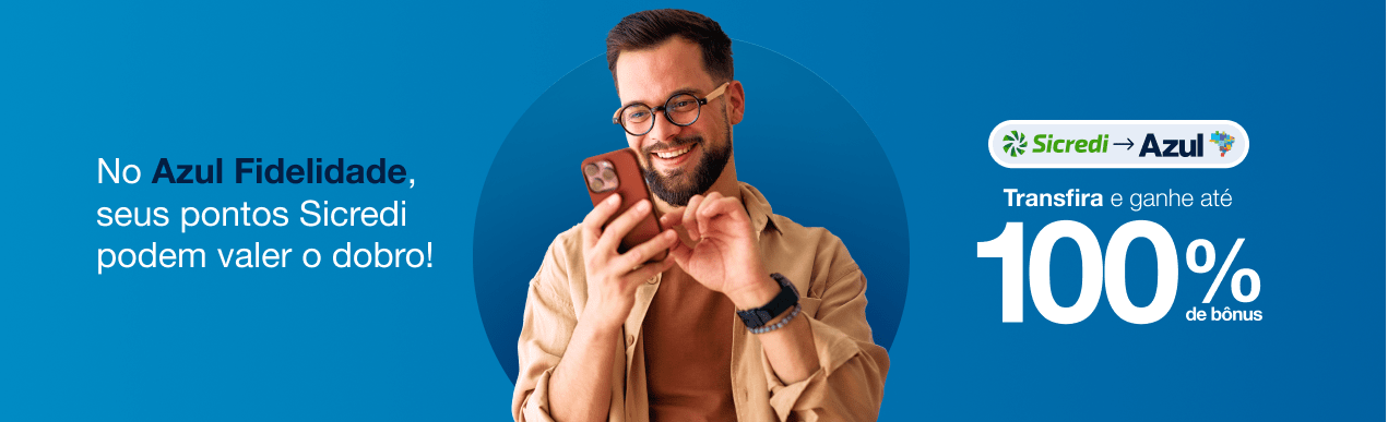A Azul lançou uma nova promoção de bônus na transferência de pontos do Sicredi para o Azul Fidelidade, com acréscimo de até 100% de pontos para assinantes do Clube Azul. A campanha é válida até 5 de fevereiro e exige cadastro prévio para participação.