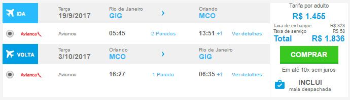Na imagem: passagens aéreas baratas saindo do Rio de Janeiro com destino a Orlando a partir de R$1.836 ida e volta com todas as taxas inclusas! A tarifa ainda inclui despacho de bagagem, oferta imperdível! E este é só um exemplo.