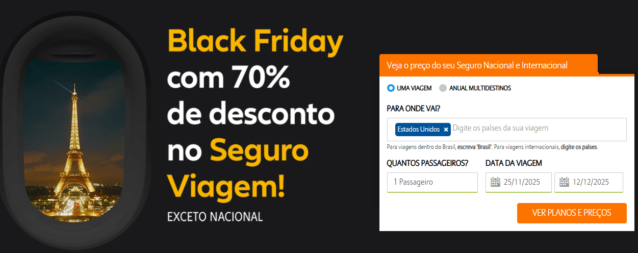Está rolando nesta segunda-feira (17/11) uma mega promoção de seguro viagem internacional com 70% de desconto! É a Black Friday da Allianz Travel!