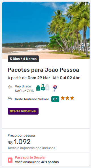 Pacotes para João Pessoa – a partir de R$ 1.092 por pessoa + taxas