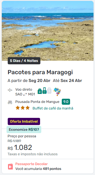 Pacotes para Maragogi – a partir de R$ 1.082 por pessoa + taxas