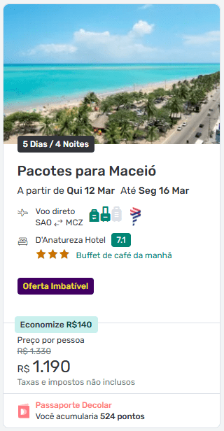 Pacotes para Maceió – a partir de R$ 1.190 por pessoa + taxas