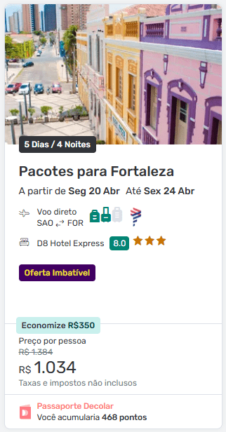 Pacotes para Fortaleza – a partir de R$ 1.034 por pessoa + taxas