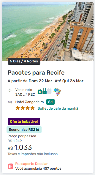 Pacotes para Recife – a partir de R$ 1.033 por pessoa + taxas