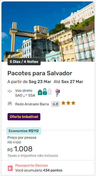 Pacotes para Salvador – a partir de R$ 1.008 por pessoa + taxas