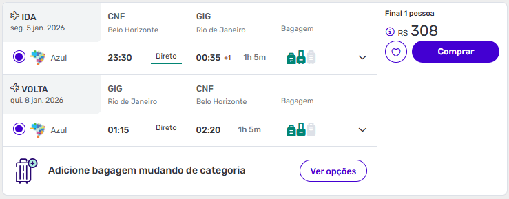 Exemplos de passagens aéreas baratas para o Rio de Janeiro