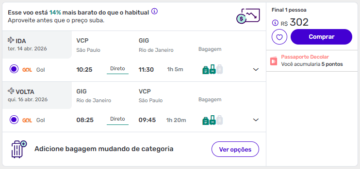 Neste momento, janeiro ou abril são os meses que estão com as melhores ofertas para embarcar para o Rio.