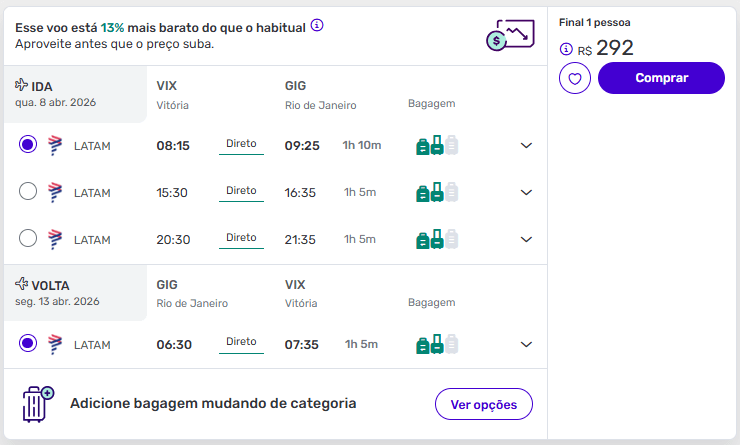 Passagens de Vitória para o Rio de Janeiro a partir de R$ 292 ida e volta