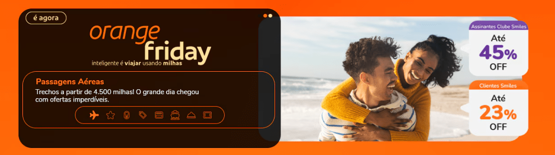 São descontos de até 45% passa assinantes Clube Smiles e Diamante, e até 23% off para clientes Smiles.
