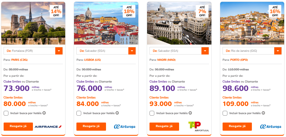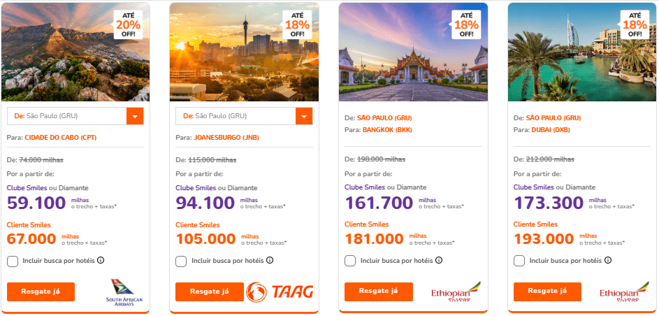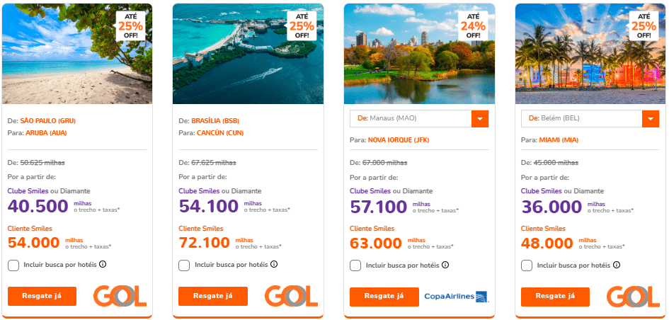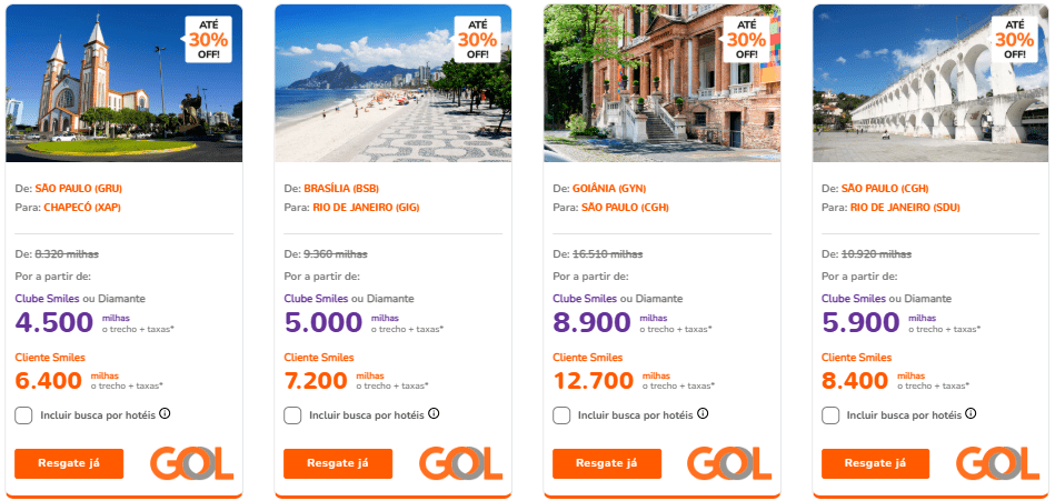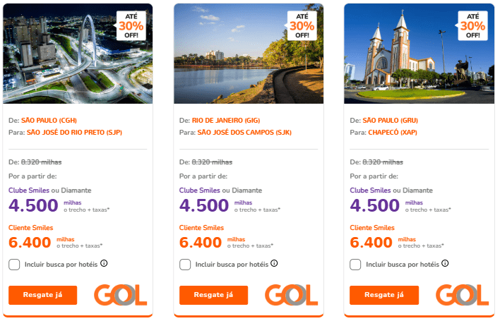 - Clientes do Clube Smiles e da categoria Diamante podem resgatar trechos com até 45% de desconto