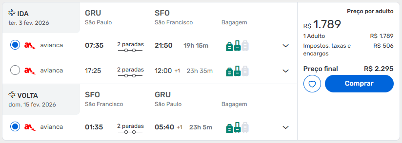 Passagens de São Paulo para São Francisco a partir de R$ 2.295 ida e volta.