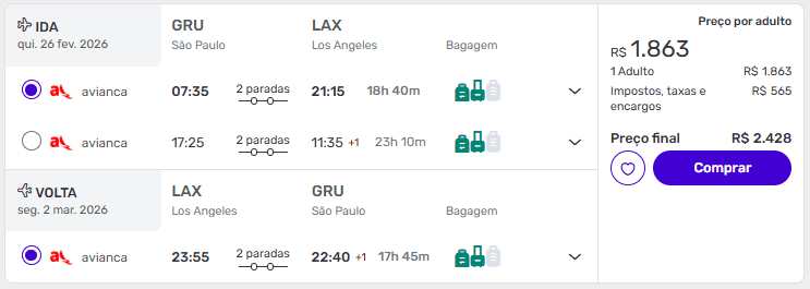 Passagens de São Paulo para Los Angeles a partir de R$ 2.428 ida e volta.