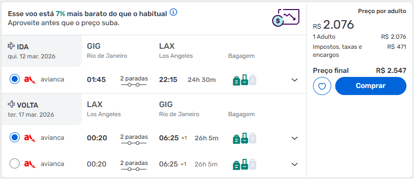 Passagens do Rio de Janeiro para Los Angeles a partir de R$ 2.547 ida e volta.
