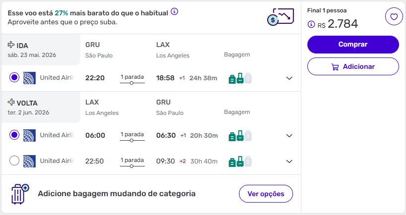 Neste momento, fevereiro, março, maio ou outubro são os meses que estão com as melhores ofertas para embarcar para Los Angeles.
