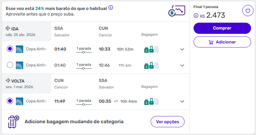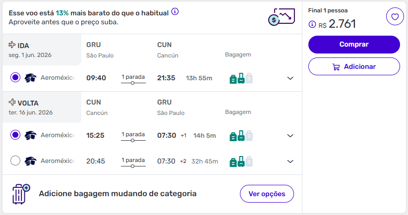 - Possibilidade de upgrade de tarifa para incluir bagagem