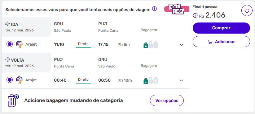 - opções com voo direto, como Punta Cana