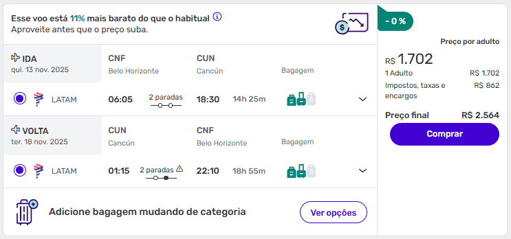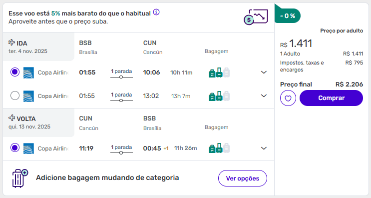 Passagens de Brasília para Cancún a partir de R$ 2.206 ida e volta.