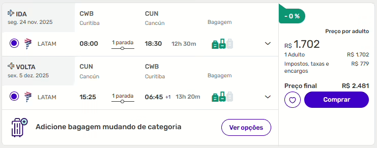 Passagens de Curitiba para Cancún a partir de R$ 2.481 ida e volta.