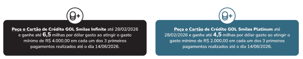 - Até 6,5 milhas por dólar para clientes Clube Smiles ou Diamante