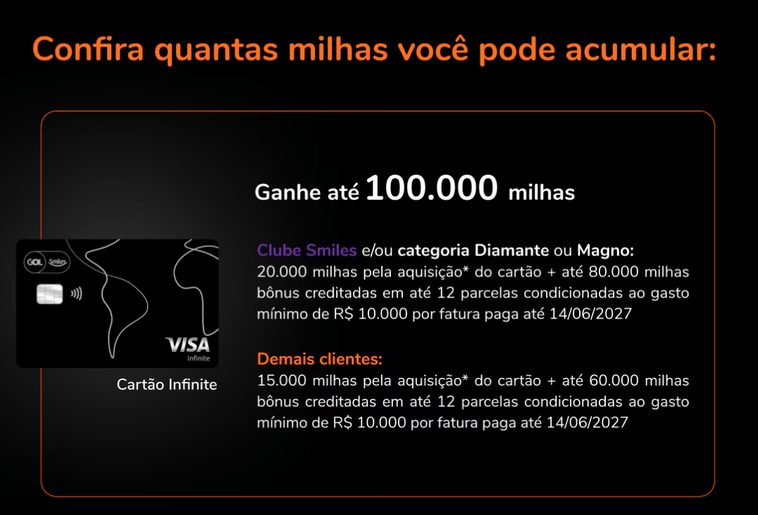 - até 80.000 milhas bônus ao longo de 12 faturas