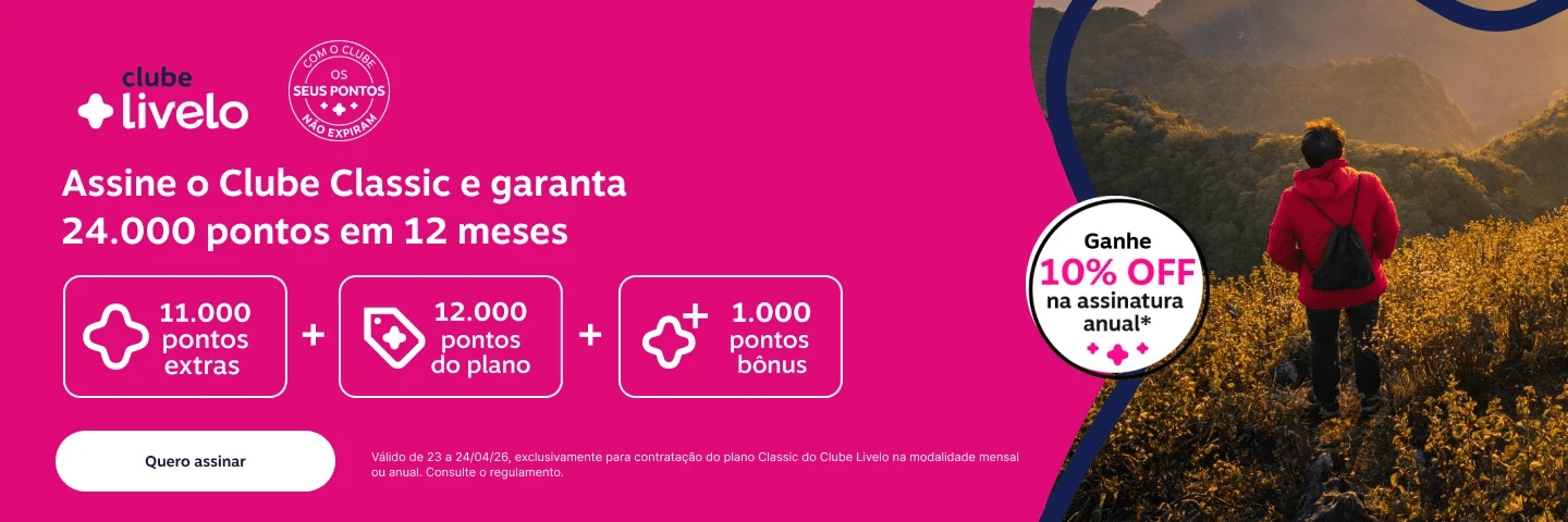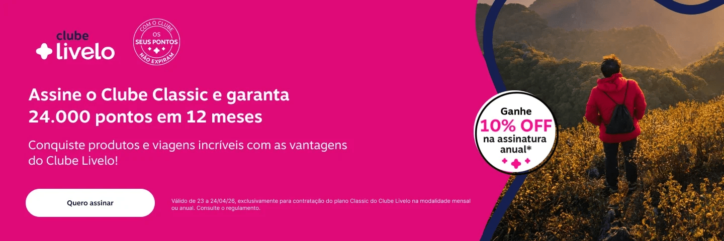 Clube Livelo Classic oferece até 24.000 pontos em 12 meses e desconto na assinatura anual